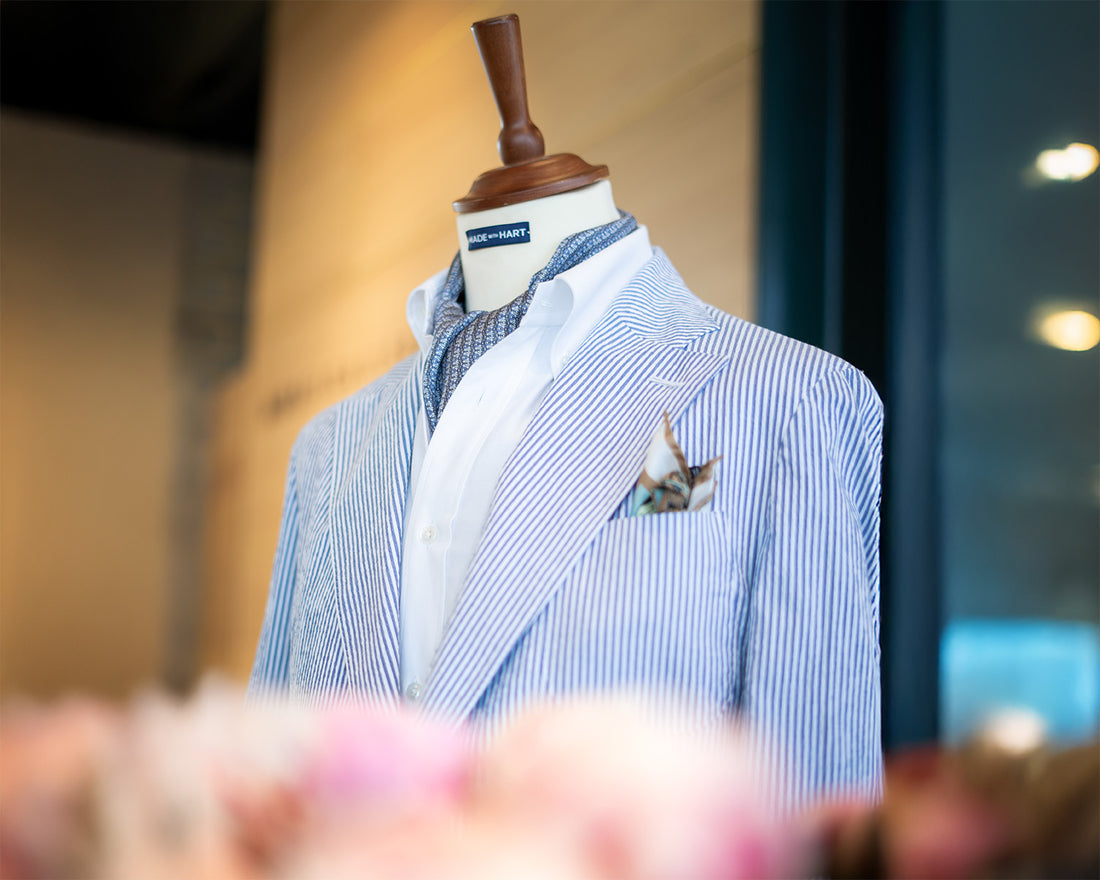 Målsøm til anledning, fritid og selskap. Fra festlige blazere til golfbukser og regnjakker.