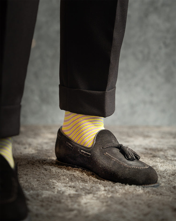 Ved å kle føttene i fargerike, gode strømper, bringer vi glede og energi inn i morgentimene. De er en påminnelse om å omfavne livets små og store gleder; for å ta fatt på dagen med oppløftende entusiasme.