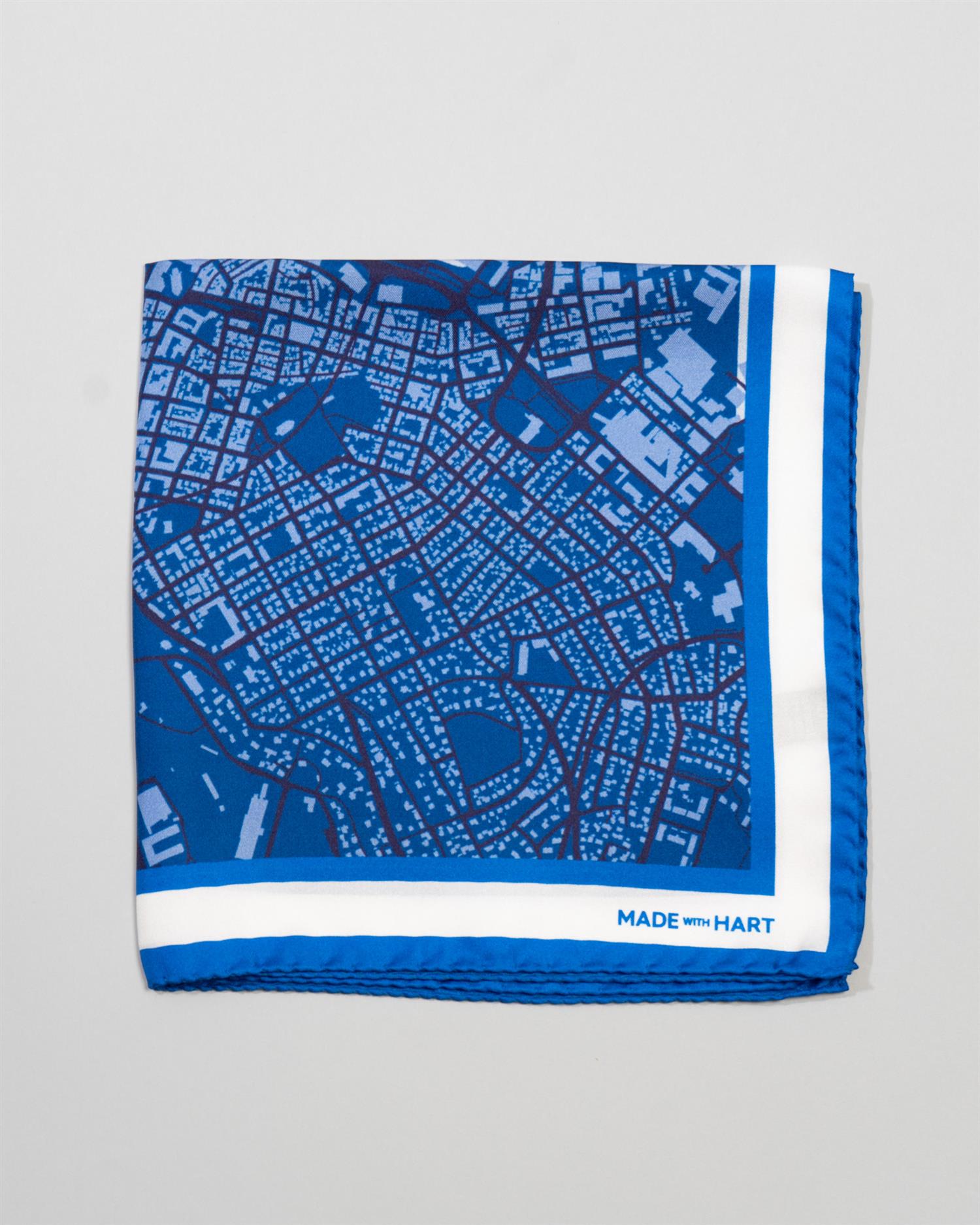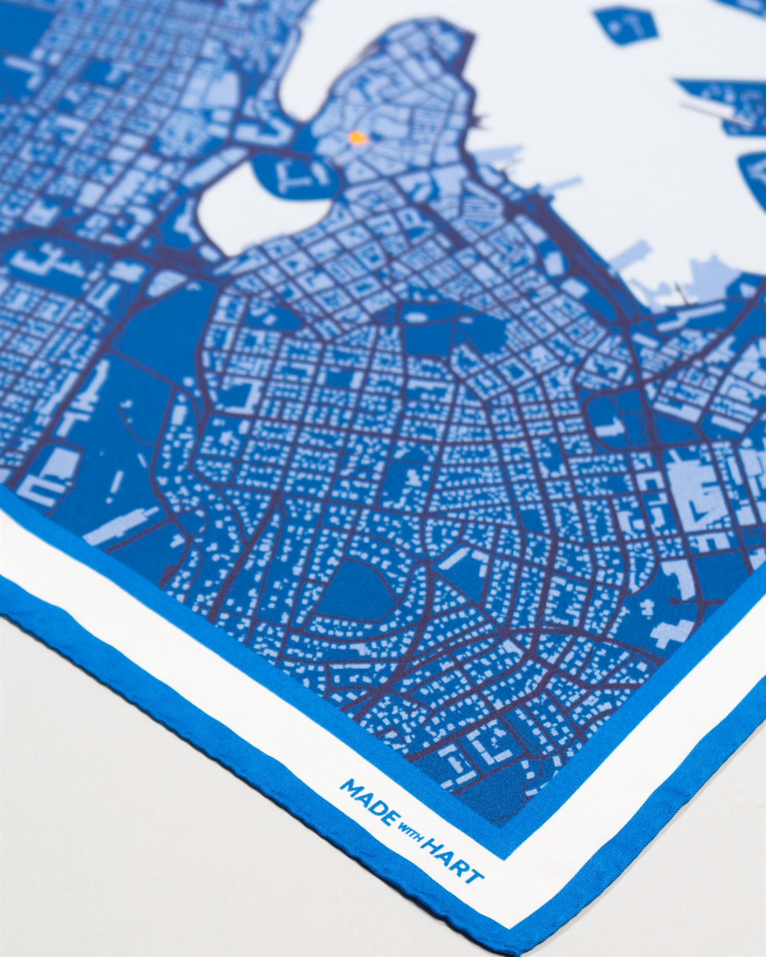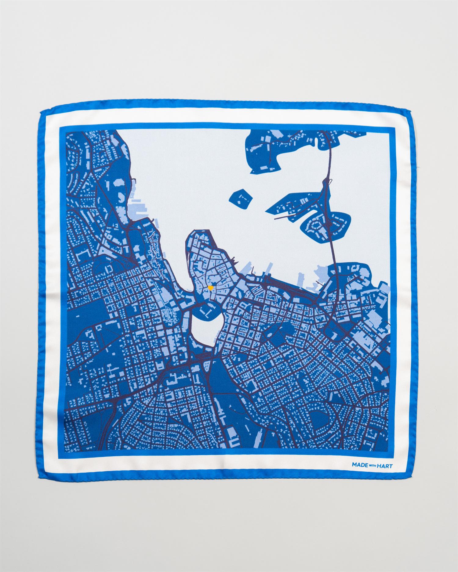 Lommetørklærne med kartet av Stavanger er designet som en hyllest til byen der alt begynte, til gatene, havnen og alle øyeblikkene som utgjør tilværelsen her.