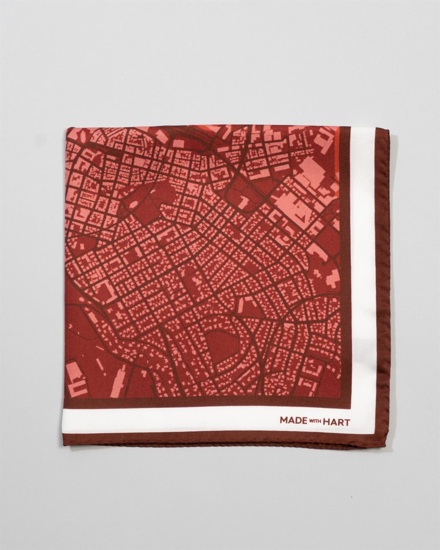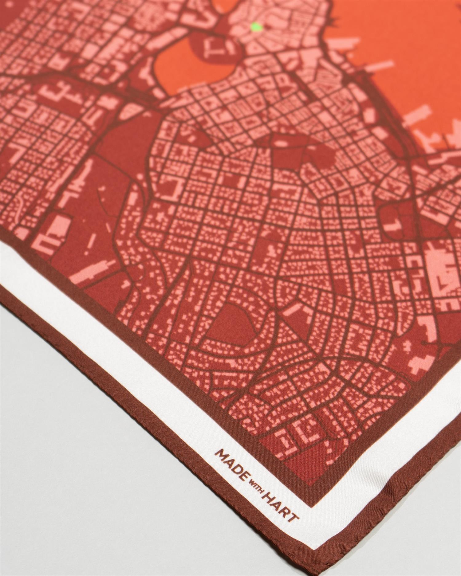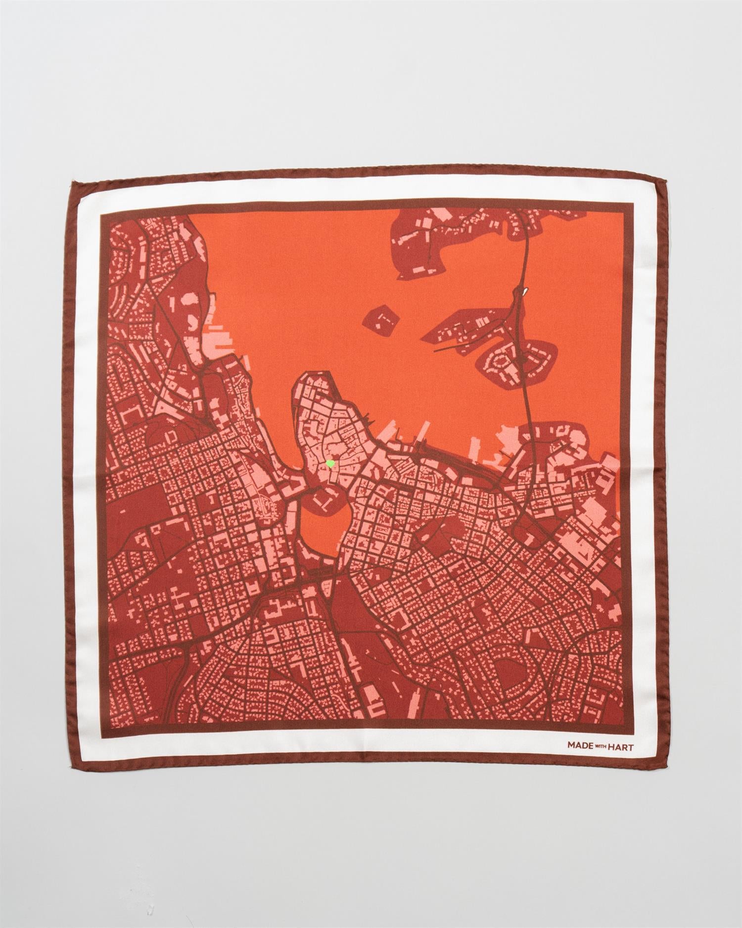 Lommetørklærne med kartet av Stavanger er designet som en hyllest til byen der alt begynte, til gatene, havnen og alle øyeblikkene som utgjør tilværelsen her.