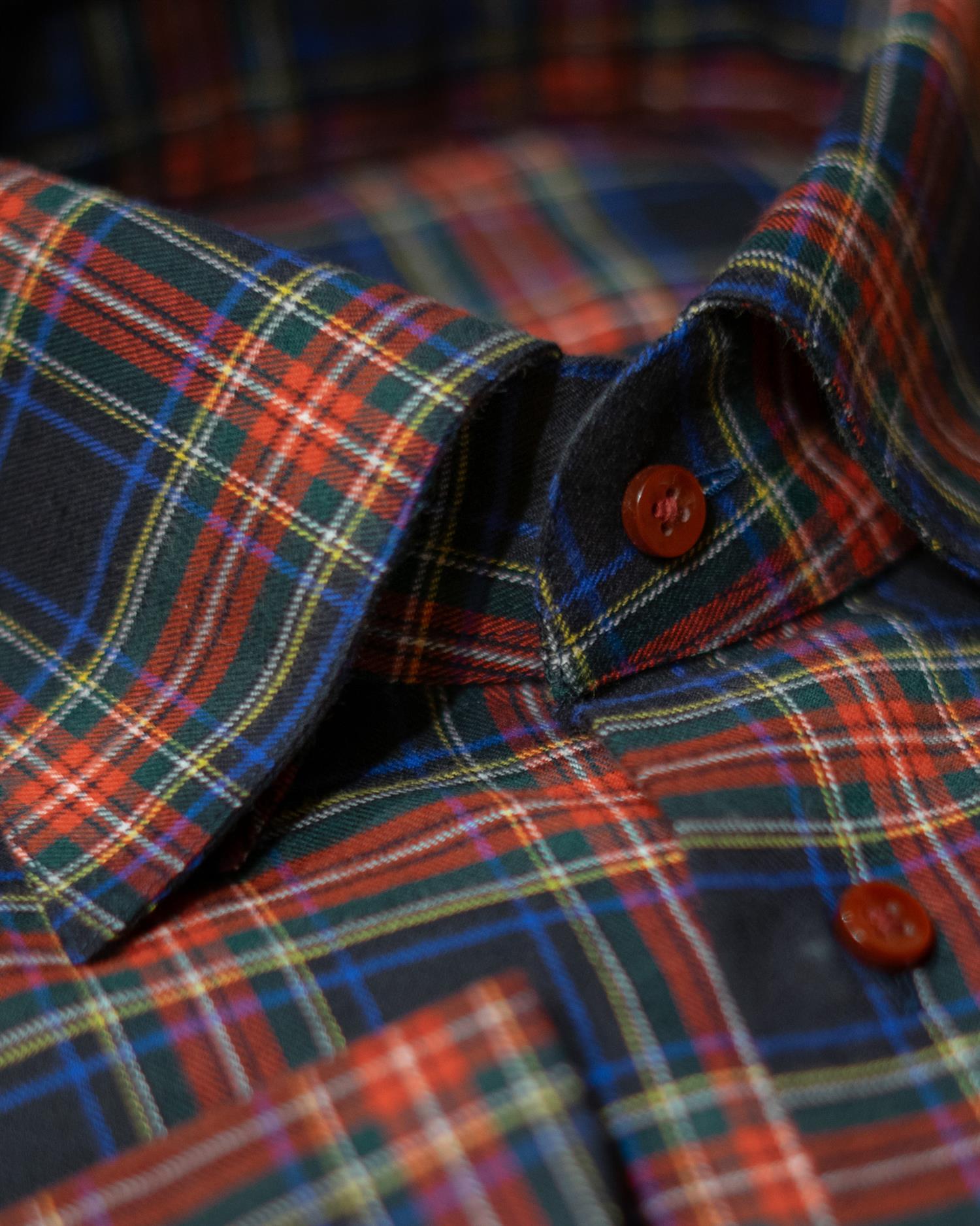 Myk skjorte i Engelsk bomullsflanell, med skjult nedknepping i kragen.