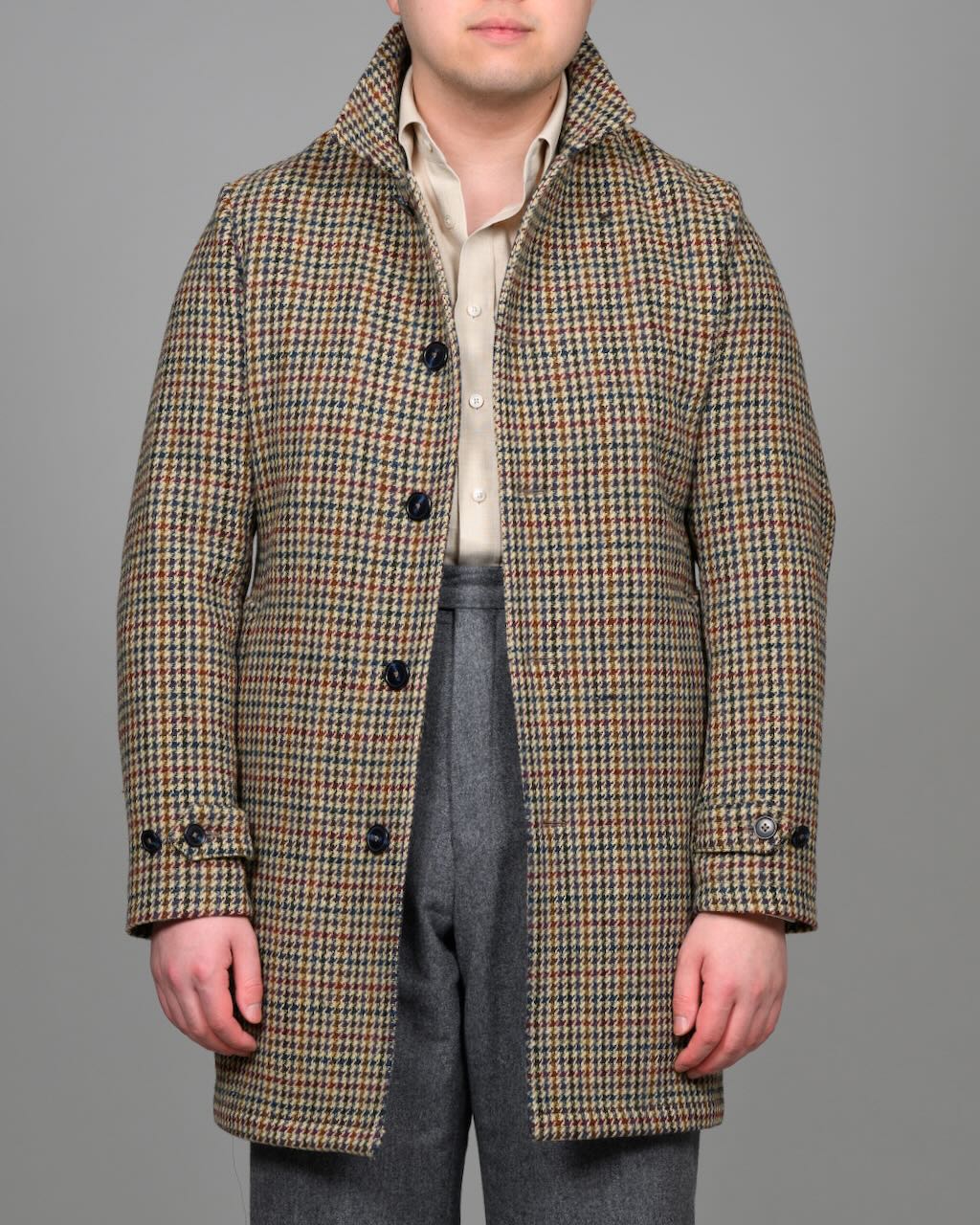 Lett frakk i håndvevd Harris Tweed® med klassiske gunclub ruter, fra Holland & Sherry.