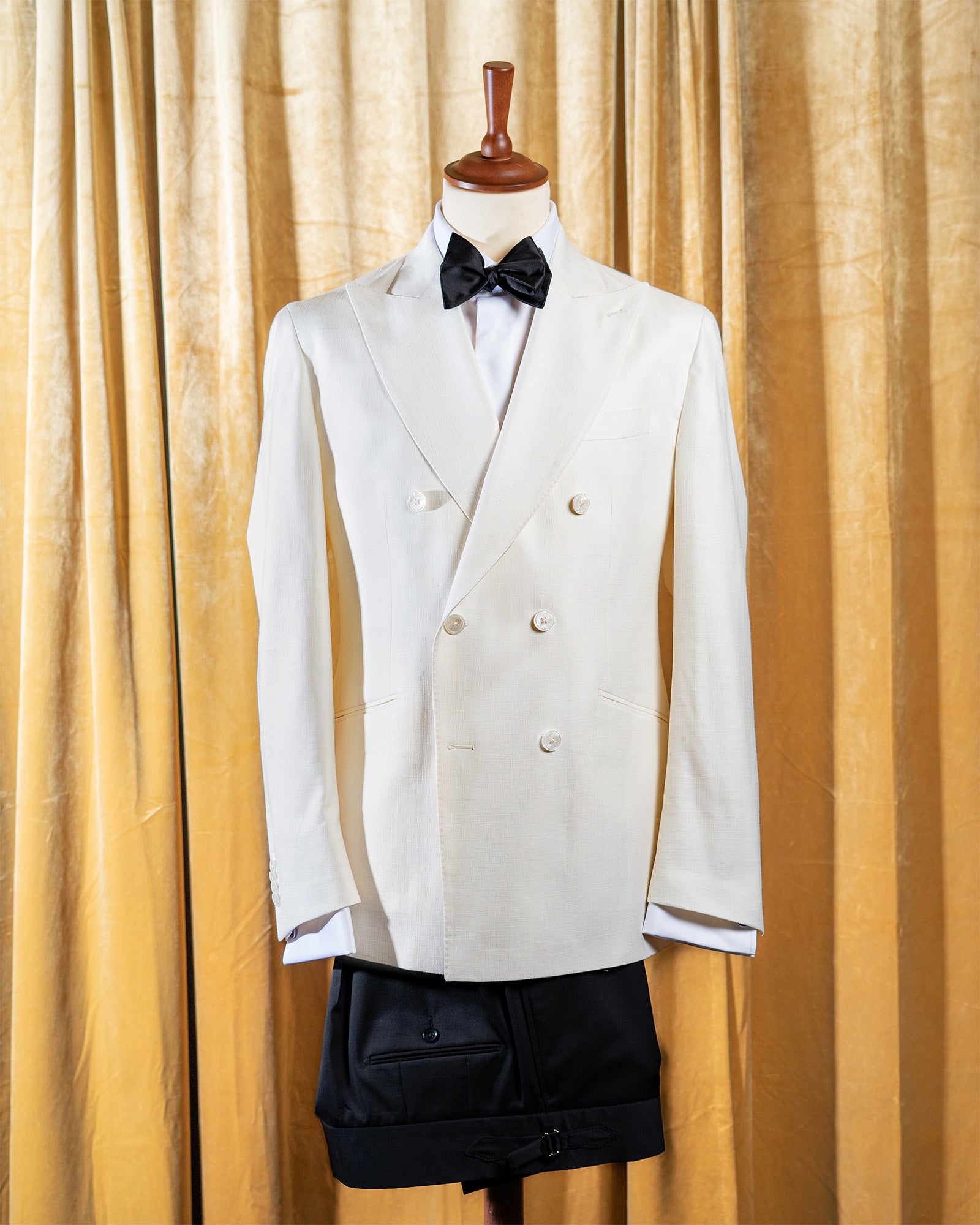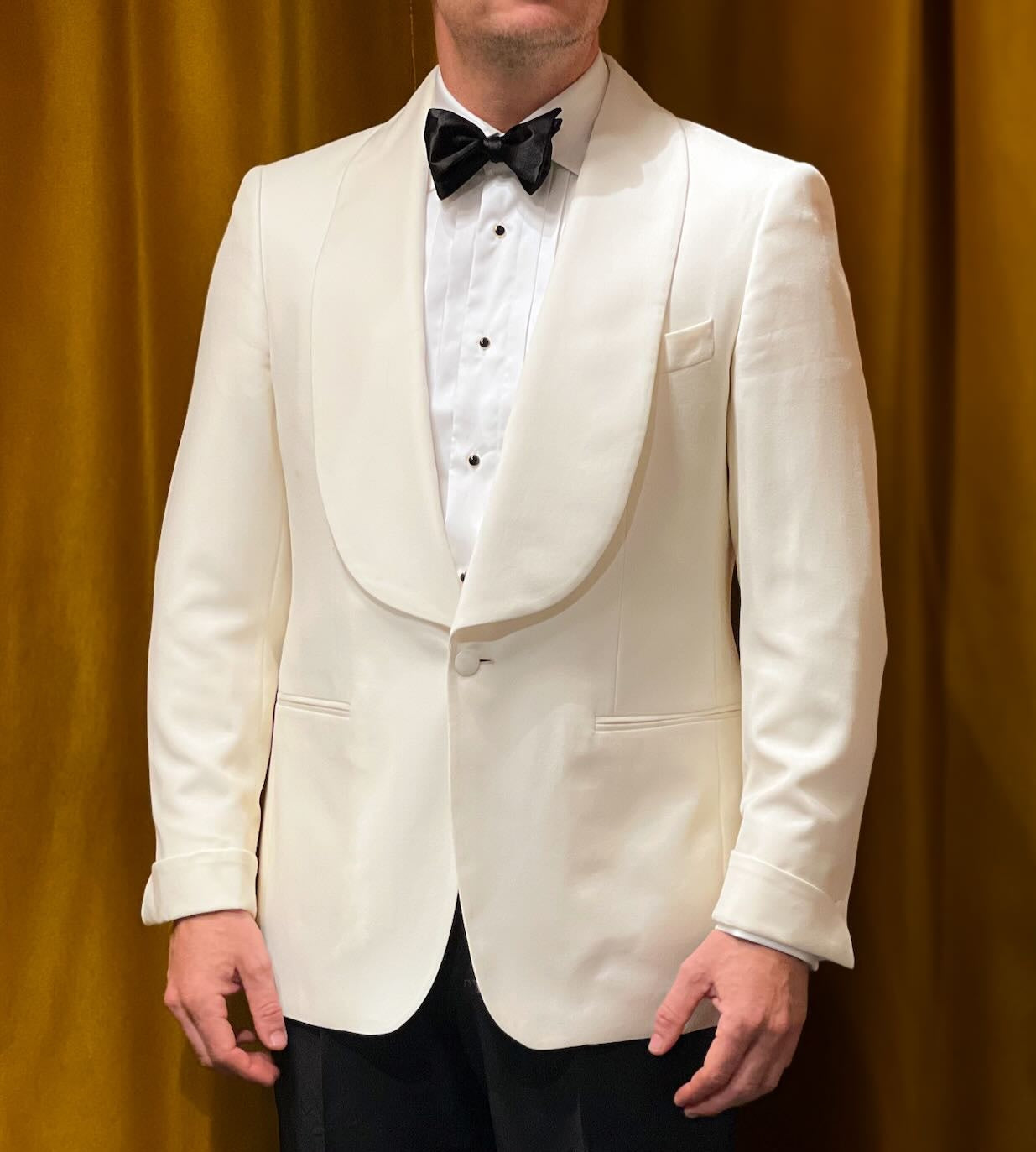 Tradisjonell hvit middagsjakke i Super 110's ull crepe, fra Zignone.